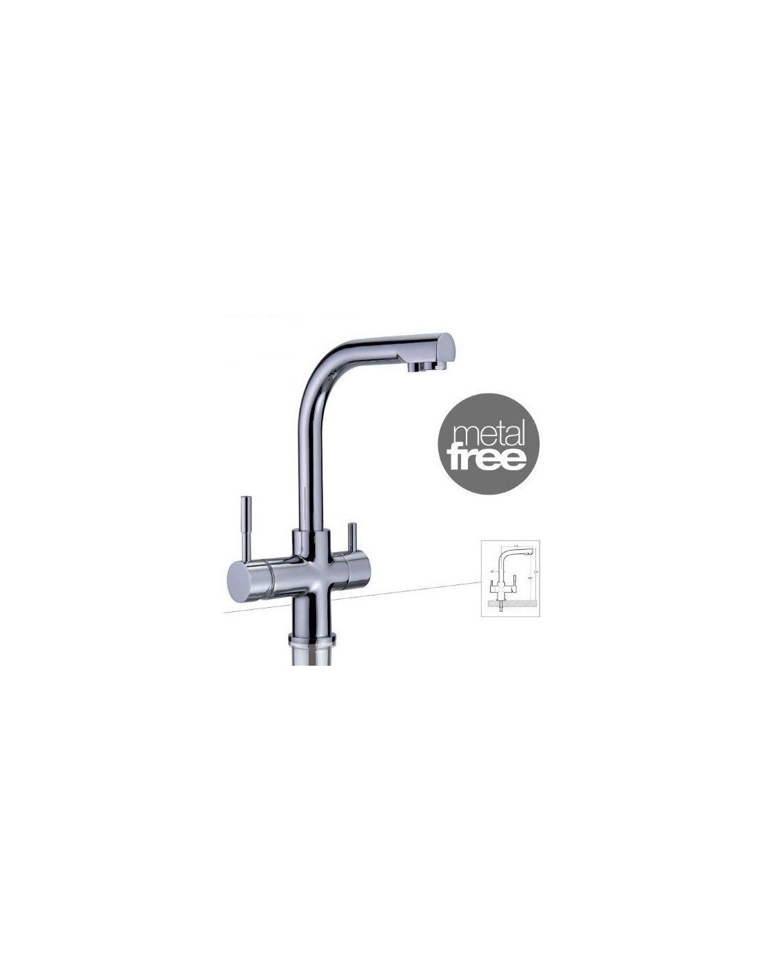 Der Dreiwegehahn mit Keramikmechanismen, Metal Free. Die Durchgänge für gereinigtes Wasser sind vollständig mit NSF-zertifiziertem Polyethylen in Lebensmittelqualität ausgekleidet, um eine Verunreinigung des Wassers durch behandelte Metallteile (Nickel, Cadmium) zu vermeiden. Das behandelte Wasser kommt niemals mit den Metallteilen des Hahns in Kontakt, wodurch stets höchste Qualität und Reinheit gewährleistet sind. Wasserhahn mit ansprechendem Design, hergestellt aus hochwertigen Materialien, um einen einwandfreien Betrieb über lange Zeit zu gewährleisten.