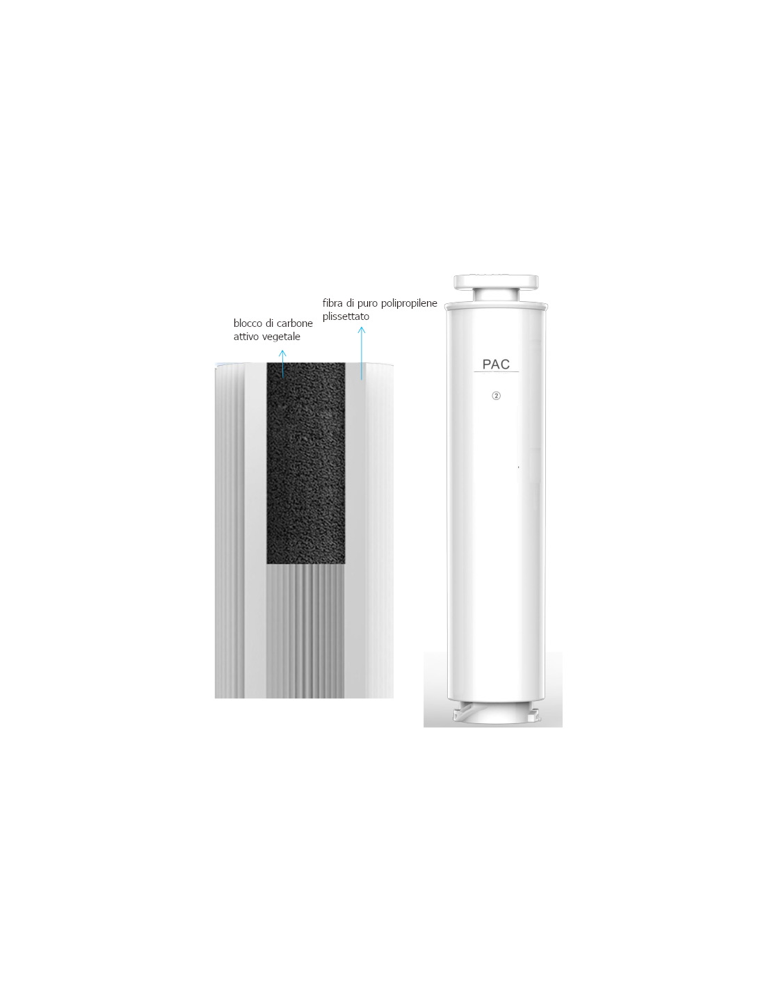 2. blocul de cărbune activat absoarbe clorul rezidual, mirosurile și gusturile. Structura constă din microgranule de cărbune activat, compactate și presate. Filtrul în acest mod conține o cantitate ridicată de masă filtrantă, comparativ cu cărbunele activat tradițional, optimizând spațiul și performanța.