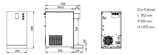 Impianto soprabanco, capacità refrigerazione 40 litri/ora, sistema di ultrafiltrazione dell’acqua in grado di rimuovere particelle non disciolte, cisti, inquinamento chimico, cloro, virus e batteri. L'acqua prodotta risulta pura, inodore, insapore, senza modifiche a livello di sali minerali, priva di microplastiche e PFAS.