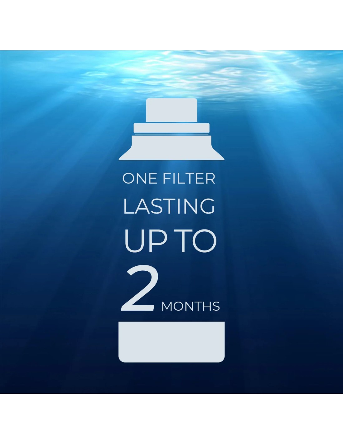 Çdo filtër individual mund të pastrojë 151 litra, rreth 2 muaj përdorim. Aplikacioni WaterH ju përditëson për skadimin e filtrit.